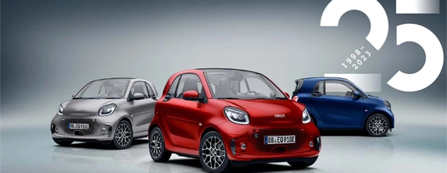 *Offerta valida fino al 31/12/2023 a fronte della permuta di vettura smart (elettrica o benzina), incentivo statale di 1.500€ (salvo disponibilità del fondo finanziario stanziato e fino ad esaurimento), anticipo 2.500€ IVA inclusa. Esempio di Noleggio riferito all’edizione limitata smart EQ fortwo 25th anniversary con E-go+ Package (optional del valore di 1.090€) con canone mensile a partire da 250€ IVA inclusa. Canoni basati su una percorrenza di 20.000 km totali in 24 mesi con assicurazione RCA (con franchigia di 250€), coperture Incendio/Furto e KASKO (scoperto 10%, minimo 500€), manutenzione ordinaria e straordinaria, installazione Wallbox, gestione amministrativa e assistenza stradale Mobilo smart inclusi. Offerta valida anche per possessori di Partita IVA, per vetture disponibili presso le concessionarie aderenti, salvo esaurimento scorte. Messaggio pubblicitario con finalità promozionale. Fogli informativi disponibili presso la Concessionaria e sul sito internet della Società.smart EQ fortwo 25th anniversary (22 kW): WLTP ciclo misto: Consumo di energia elettrica in kWh/100 km: 15,7 – 17,0; Emissioni di CO2: 0