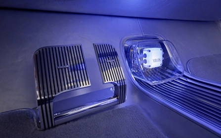 Una delle caratteristiche più sorprendenti è l'illuminazione a LED che domina il suo profilo. La griglia anteriore è un vero e proprio caleidoscopio di punti LED a forma di stella, che si fondono con il grande stemma centrale, anch'esso illuminato, dando vita a un'icona luminosa. I gruppi ottici dei fari, anch'essi a forma di stella, illuminano la strada con uno sguardo penetrante, mentre un sopracciglio luminoso percorre l'auto lungo tutta la sua lunghezza laterale, risultando in un semplice ed elegante profilo cromato una volta spento.