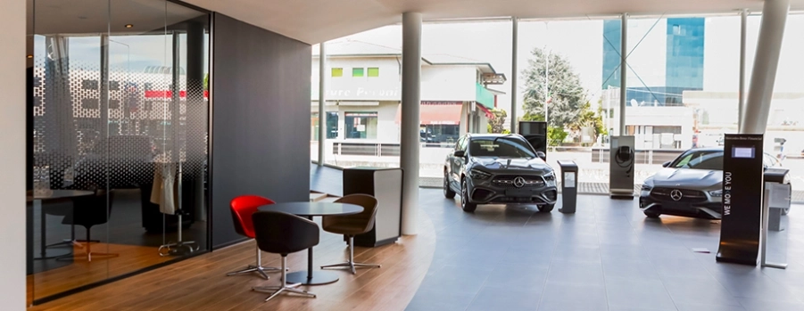 La nuova disposizione dello showroom, studiata nel minimo dettaglio per creare sinergia, rappresenta un luogo accogliente e invitante dove i clienti possono sentirsi a proprio agio e vivere un'esperienza di acquisto positiva a 360°. In ogni angolo della Concessionaria, gli strumenti digitali e i supporti multimediali vengono utilizzati per presentare i prodotti e servizi forniti, permettendo una comprensione di tutte le informazioni rapida e chiara, senza il rischio di rimanere con dubbi.